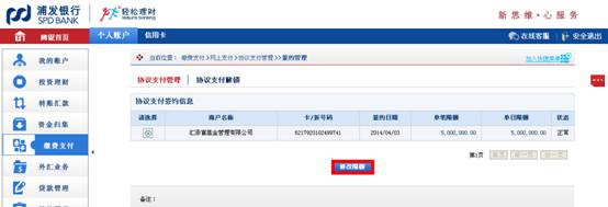 5. 選擇匯添富基金,點擊“修改限額”按鈕