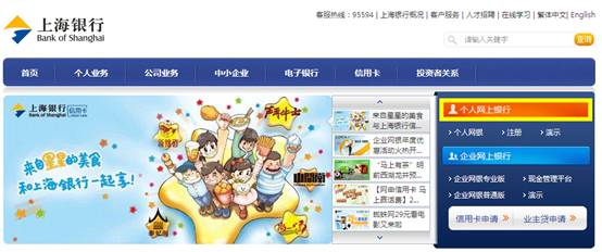 1. 登錄上海銀行網(wǎng)站(http://www.bankofshanghai.com/),選擇個(gè)人網(wǎng)上銀行