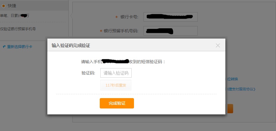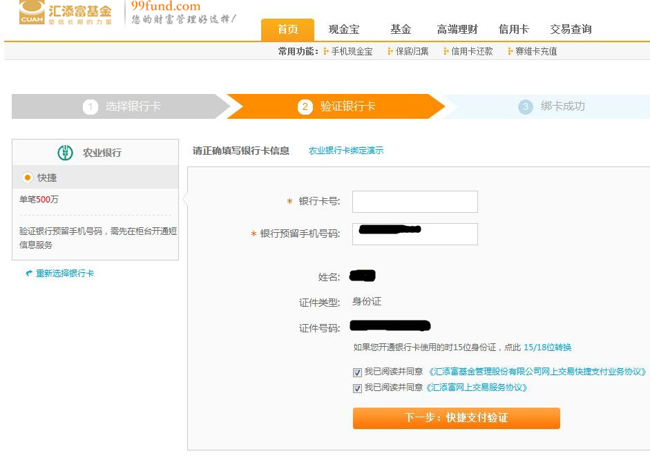 3. 輸入銀行卡號和銀行預(yù)留手機號碼,點擊下一步