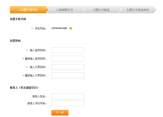 第二步:輸入“手機號碼”、“附加碼”、“驗證手機號碼 ”,并勾選協(xié)議點擊“下一步”